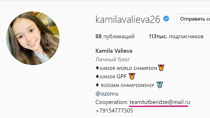 Август 2021, компания Puma объявляет Камилу Валиеву своим амбассадором, что подразумевает заключение коммерческого контракта. На странице Валиевой в инстаграме красуется адрес для контактов - teamtutberidze@mail.ru. Это адрес ООО "Тим Тутберидзе" (ОБЩЕСТВО С ОГРАНИЧЕННОЙ ОТВЕТСТВЕННОСТЬЮ "ТИМ ТУТБЕРИДЗЕ". Генеральный директор - Тутберидзе Этери Гогиевна.)