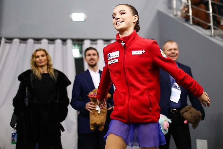 Смотреть с 4:45. Аня завершает прокат, она счастлива что все получилось, подъезжает к бортику за которым стоит Тутберидзе, и буквально меняется в лице. Не говорит ни слова, не смотрит тренерше в глаза.