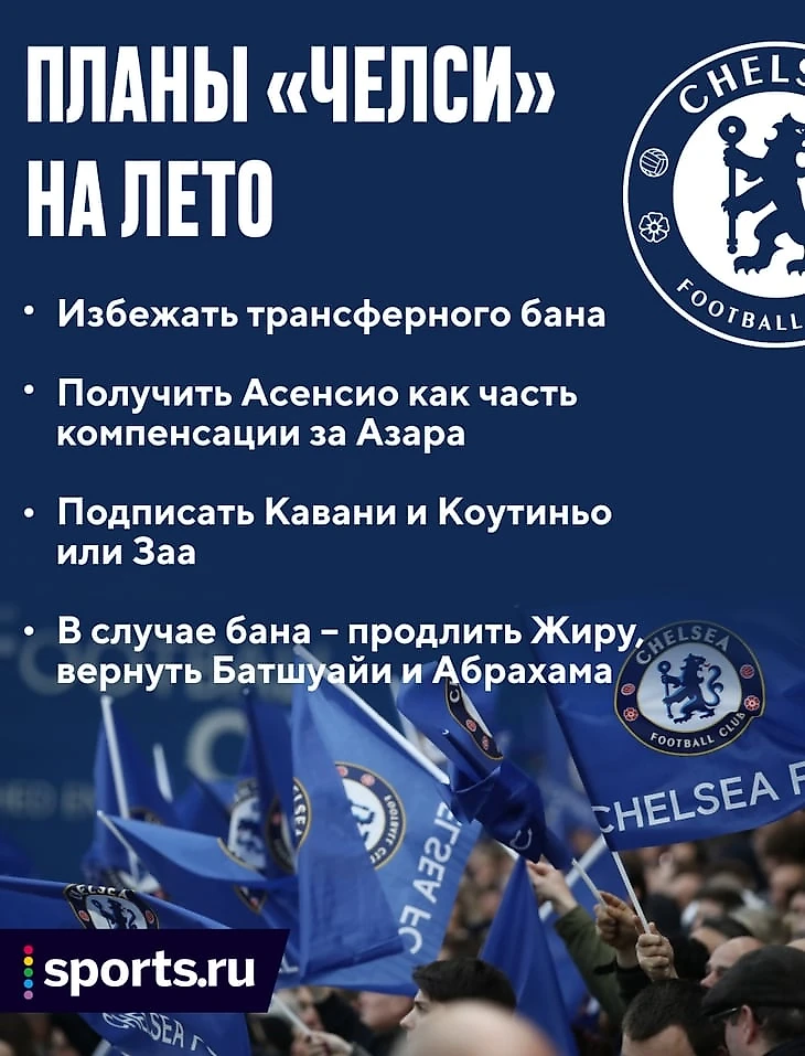 У «Челси» большие планы на лето, но все портит история с трансферным баном. Пока непонятно, сдвинет ли очередная апелляция лондонцев его хотя бы на полгода – чтобы клуб укрепил состав.