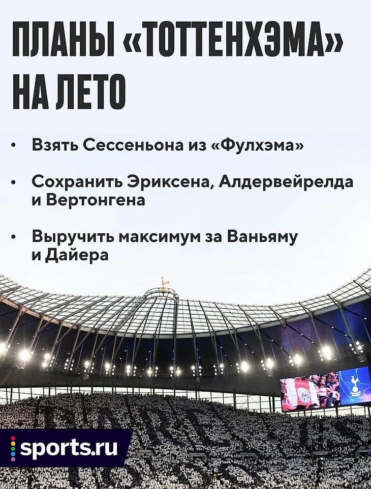 Есть у лондонцев и другие проблемные точки: у Алдервейрелда летом в контракте активируется опция выкупа за 25 млн фунтов, да и в целом по соглашению остается всего год, тот же срок и у Вертонгена. Почти наверняка уйдет Ваньяма, высока вероятность, что продадут Дайера. По Эриксену для лондонцев тоже все грустно: скорее всего, его придется продать, чтобы следующим летом не ушел свободным агентом. Хотя есть небольшая вероятность, что датчанин продлит контракт. При этом в договоре будет опция о возможном переходе в топ-клуб вроде «Реала» или «Барселоны».