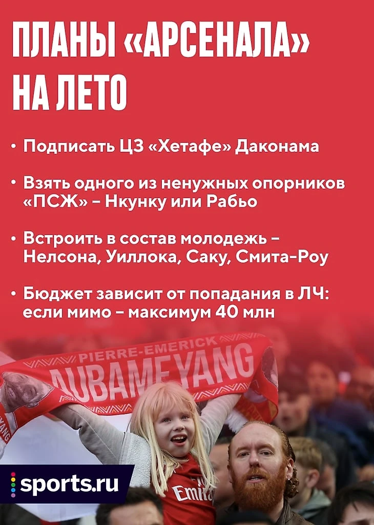 Есть второстепенные цели: крайний нападающий, центральный нападающий, левый и правый защитники. Но они будут отрабатываться в режиме «как повезет». Зимой «Арсенал» присматривал на край атаки Ивана Перишича и следил за Янником Феррейрой Карраско. Конкретных кандидатов в атаку нет. Уэлбек ушел, забившего в последнем туре первый гол Эдди Нкетиа могут отдать в аренду, если найдут кого-то посильнее.
