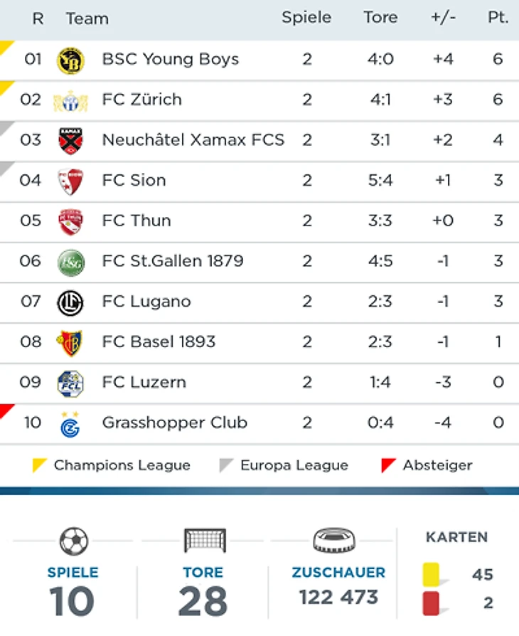 Обзор 2-го тура швейцарской Суперлиги 2018/19