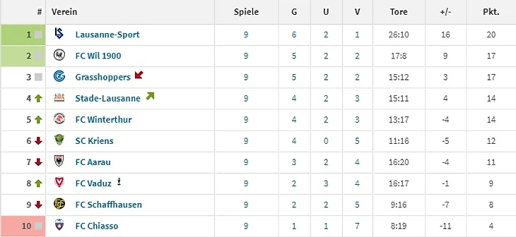 Середина таблицы представлена четырьмя командами. Кто-то здесь привычный гость, как «Винтертур» или «Кринс», кто-то вновь хандрит в начале сезона, как «Арау», а кто-то, такое ощущение, пользуется эффектом новичка. «Стад-Лозанна-Уши» – фрештим, которой многие предрекали борьбу за выживание. Нет, серьёзно, большая часть состава – ноунеймы из Лиги Промоушн, сама команда существует меньше 20 лет и в той же самой Лиге Промоушн появилась-то три года назад всего. Однако ребята крепко взялись за дело, отобрали несколько важных очков, а в качестве вишенки на торте грохнули «Лозанну» в дерби со счётом 3:0. Франкофонская Швейцария скинулась игроками, которые немного не тянули уровень команд-соседей по региону. В результате, в составе нарисовались Мфуи (экс-«Серветт»), Ле Погам (экс-«Ксамакс»), Маньер (экс-«Лозанна»). А ноунеймы из Лиги Промоушн оказались на данный момент довольно добротными игроками. Чего только стоит испанец Хуан Парапар, который до 28 лет слонялся по швейцарским подвалам, а теперь уничтожает «Лозанну». Определённо, за ними стоит наблюдать.