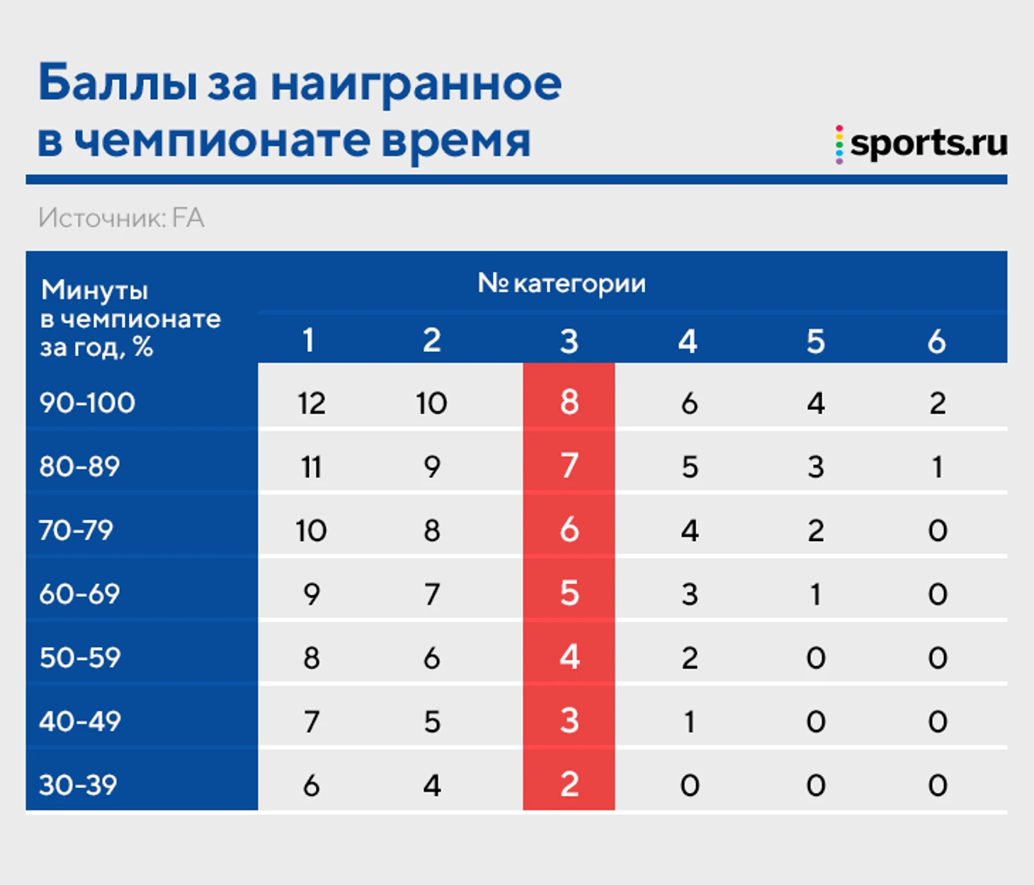 • Если игрок выступал в топ-лиге (перечень топ-лиг не публиковали) и провел за клуб 30% и более от общего игрового времени, то получал 1 балл.