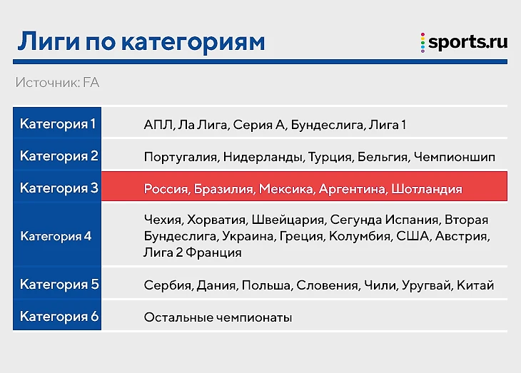 Оставшиеся баллы легко добрать через внутренний чемпионат. РПЛ определили в третью категорию.