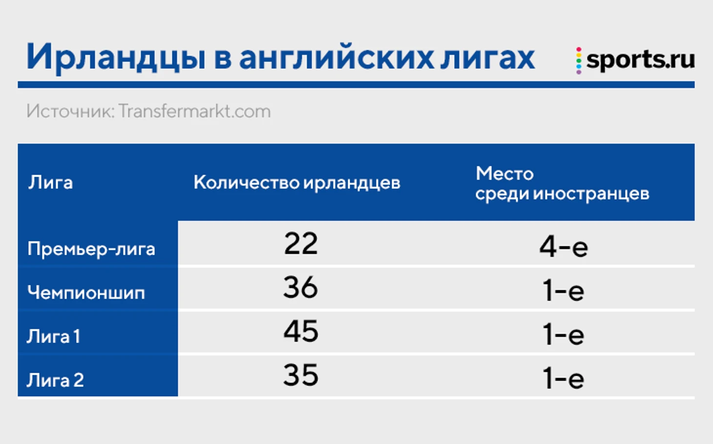Больше всех от Брексита пострадает Ирландия – она не входит в Соединенное королевство, но географически и исторически тесно связана с Великобританией. В профессиональных лигах Англии играют 138 ирландцев – многие пришли в команду до 18 лет.