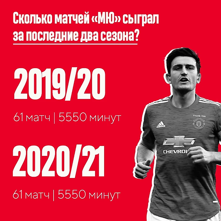 «Манчестер Юнайтед» сыграл 122 игры за два сезона – Магуайр вышел почти во всех.