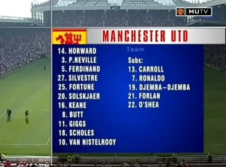 В 2018-м, к 15-летию дебюта, «Манчестер Юнайтед» выложил нарезку всех касаний Криштиану Роналду в том матче. Можно посмотреть в ютубе или твиттере.
