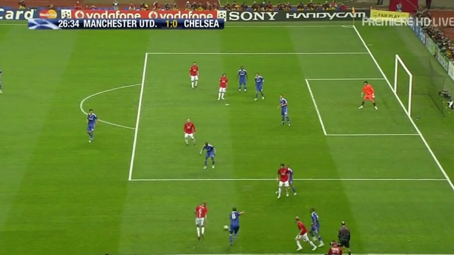 Когда Браун получает мяч и готовится к навесу, в штрафной 4 защитника против троих атакующих игроков «МЮ». В теории Карвалью мог переключиться на Роналду, Терри накрыть Тевеса, а Макелеле – Руни.