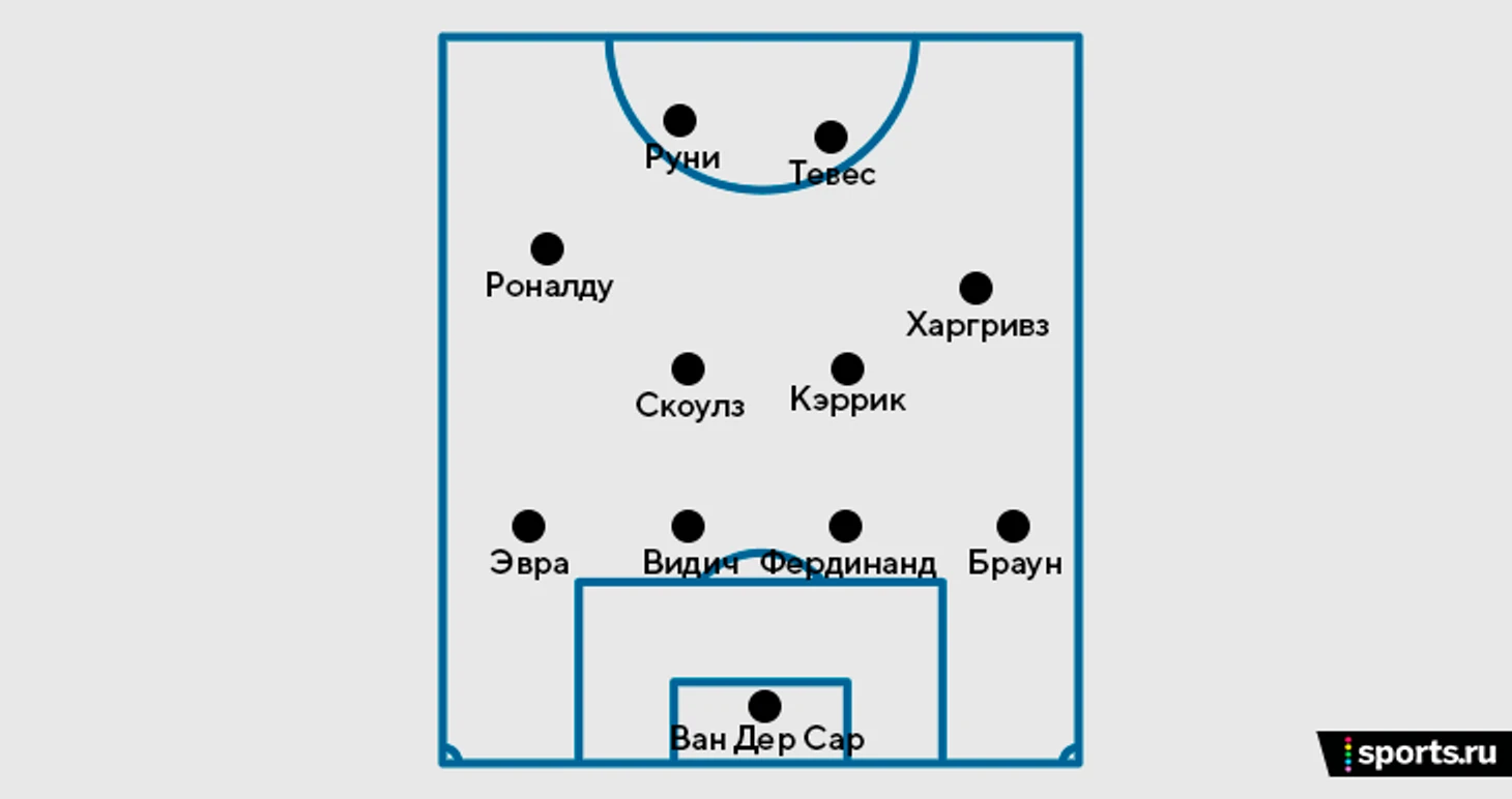 • Дополнение от доктора Лукомского. Если при контратаках вполне уместно было рассуждать о супертрио (быстрее всех убегали и классно взаимодействовали), то в позиционной игре Тевес, Роналду и Руни были частью атакующей четверки.