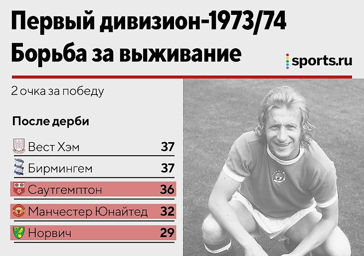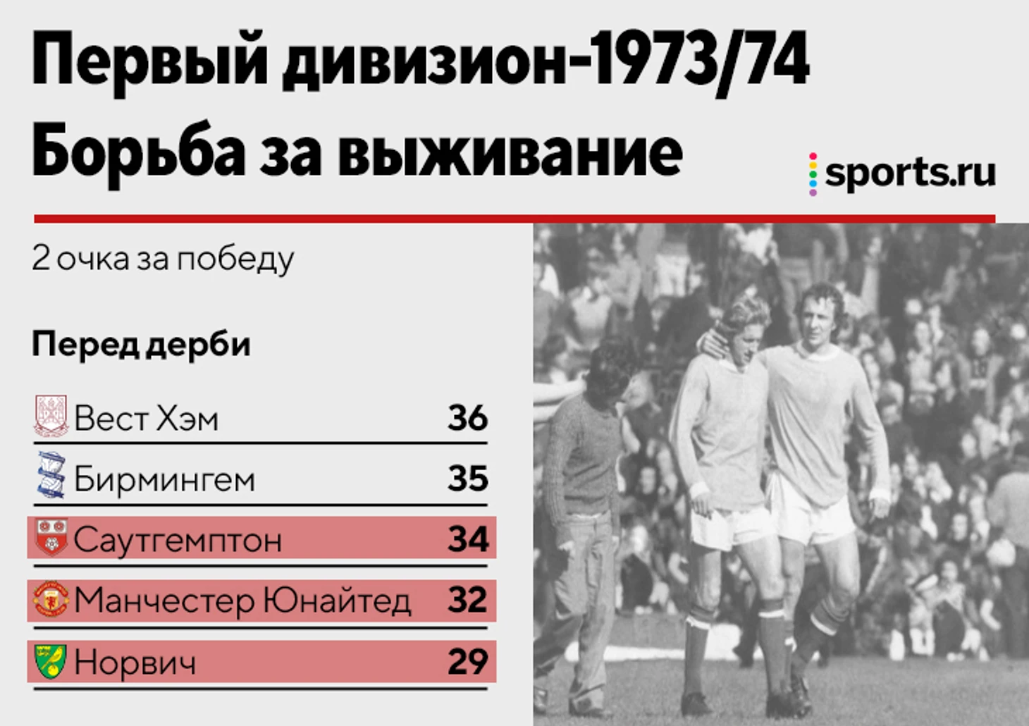 27 апреля 1974 года весь Манчестер кипел предвкушением дерби – оно впервые за долгое время имело турнирное значение. За два тура до конца чемпионата «Юнайтед» нуждался в чуде, чтобы сохранить прописку в первом дивизионе – и чудо должно начинаться с победы над соседями по городу: команда отставала на три очка от спасительного 19-го места. В те годы за победу давали два очка, поэтому «МЮ» нужно было точно выигрывать оба матча и верить, что «Бирмингем» проиграет свои.