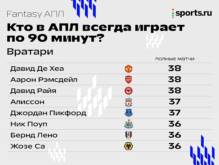 Кто в АПЛ играет без замен? Много вратарей и уникальный полевой