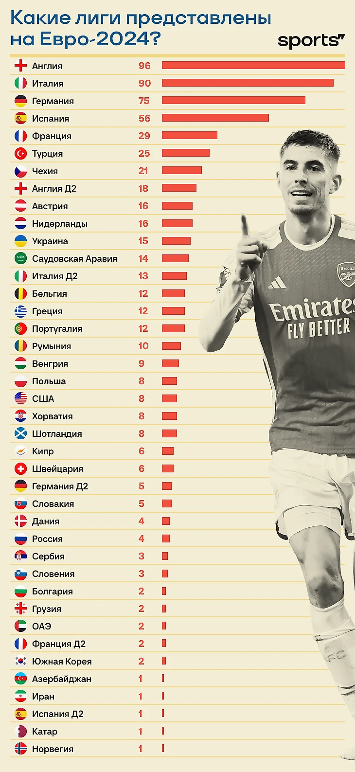Сколько игроков из РПЛ на Евро? А какие лиги самые востребованные?