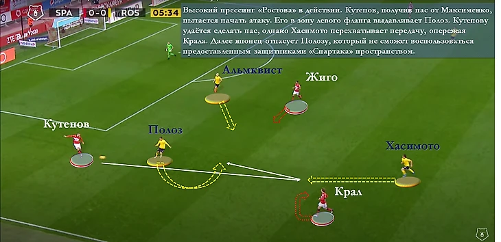 "Ростов" первый тайм играл агрессивно без мяча. Защитники "Спартака" терялись под прессингом