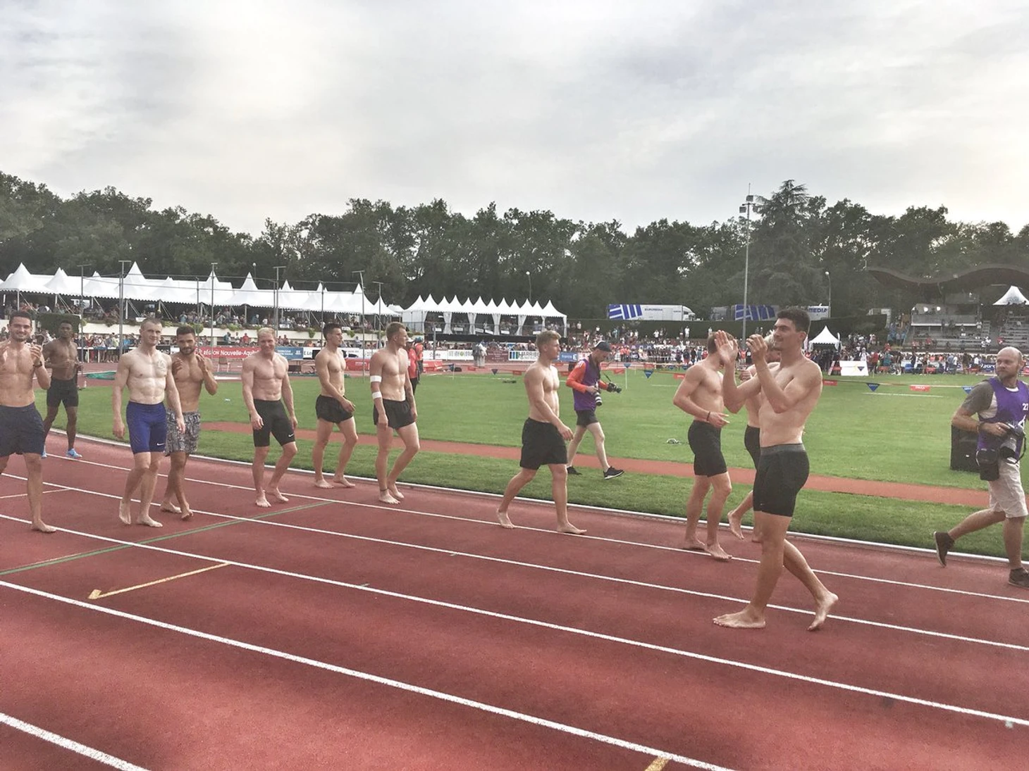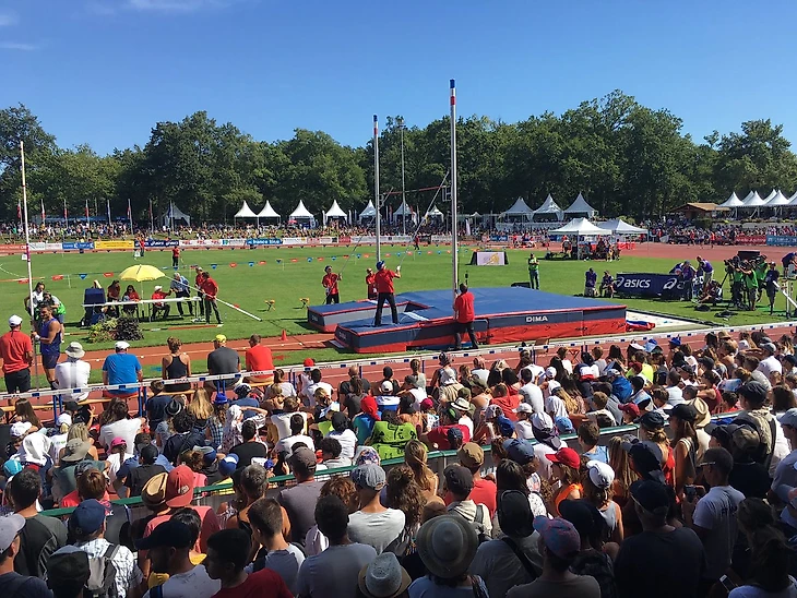 В Талансе десятиборцы потихоньку начинают прыжок с шестом (8-й вид). Организаторы пустили зрителей вплотную к сектору, получилось довольно атмосферно.