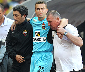 Напомним, вчера в Германии Игорь Акинфеев прошёл тщательное обследование. Подтвердились самые худшие опасения: у Игоря полный разрыв передней крестообразной связки левого колена (которое было прооперировано в 2007 году), разрыв внутреннего мениска и эдема кости.