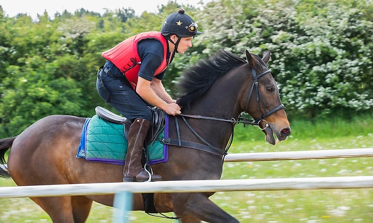 После нескольких часов занятий на тренажере Тэбб выводит скакуна на тренировочный заезд, переходя от легкой прогулки к езде галопом, развивая скорость до 25-30 км в час. «Заезд должен быть точным и четким», — сказал он, отряхивая коня по имени «Daaweitza», в свои лучшие времена заработавшего почти 100 тысяч фунтов стерлингов.