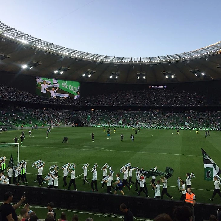 - В конце о хорошем. В перерыве мы увидели первомайскую демонстрацию из воспитанников детских школ "Краснодара". Наверно лучший момент матча, сомнений нет - всё у нас обязательно будет хорошо.