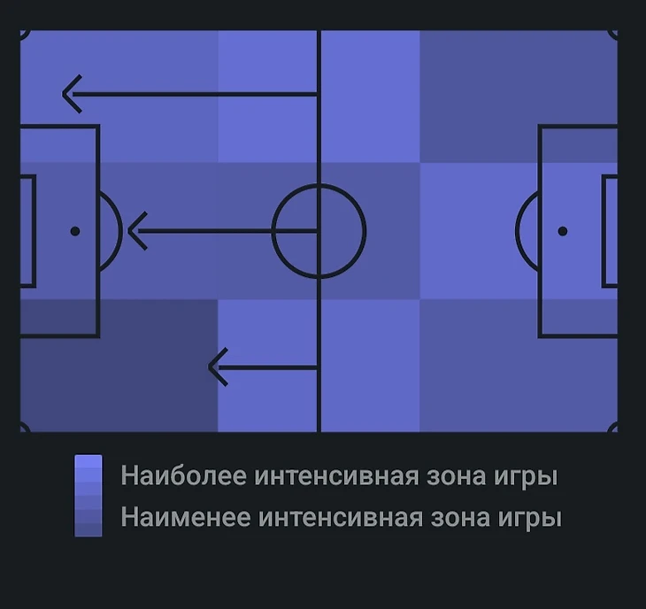 Вопреки ожиданиям матч начался под контролем гостей, которые даже какое-то время боролись за владение. Главной целью для Воронежцев было успешно миновать центр поля, а дальше действовать по ситуации. Об этом говорит схема 4-2-4 при билд-апе, где Брахими поднимался в атаку, Дзиов занимал его место на фланге, а Якимов опускался в центр защиты для розыгрыша. Дальше как правило шёл длинный пас, а атака должна была зацепиться за него или за подбор. И ей это достаточно неплохо удавалось (59% выигранных верховых единоборств). В финальной трети же плана «Факел» не имел. Как часто бывает с командами со дна таблицы (особенно часто наблюдается за «Ахматом»), в отсутствие класса они стараются тупо перебегать более статусного соперника. «Краснодар» в свою очередь начал матч расслабленно и очень долго вкатывался. Это и так достаточно частая проблема «быков», но здесь, похоже, сказалась ещё и недооценка соперника. За счёт класса Кривцов, Батчи и Са все-таки создавали моменты (тем более, что как и не лучшим образом сыгравший в роли ложной девятки Мозес, они не были прикованы к своим позициям. Мозес, к слову, в очередной раз подтвердил себя как не более, чем Джокера для выхода на замену в тяжёлых матчах), но против низкого блока с пятёркой защитников как всегда было тяжело. Факел явно был ближе к голу. Хозяева спокойно могли уходить на перерыв в роли отстающих.