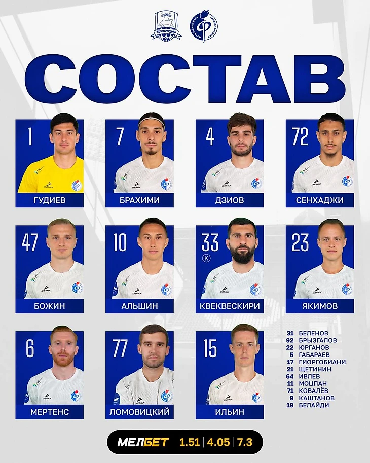 Пятибратов же координально изменил стартовый состав «Факела» после поражения от безнадёжно идущего на последнем месте «Оренбурга». В воротах оказался лучше играющий ногами Гудиев, специально под соперника были заменены оба латераля, а вместо Каштанова в основу вернулся Мертенс.