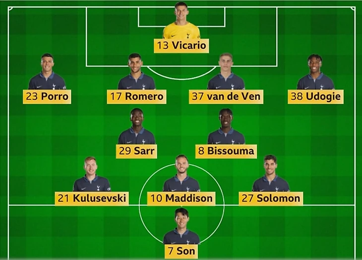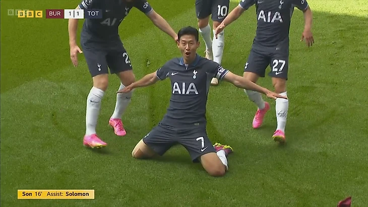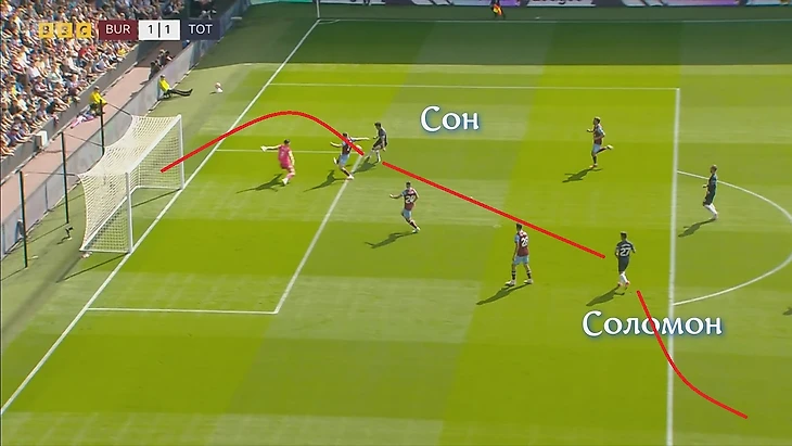 Интересно, что в стартовом составе не было даже номинального центрфорварда. Помимо 4-х игроков средней линии, о которых я сказал выше, числились только кореец Сон Хын Мин и израильтянин Соломон. Нет, не библейский царь. Полузащитник Манор Соломон, хоть и атакующий, но всё же не форвард.