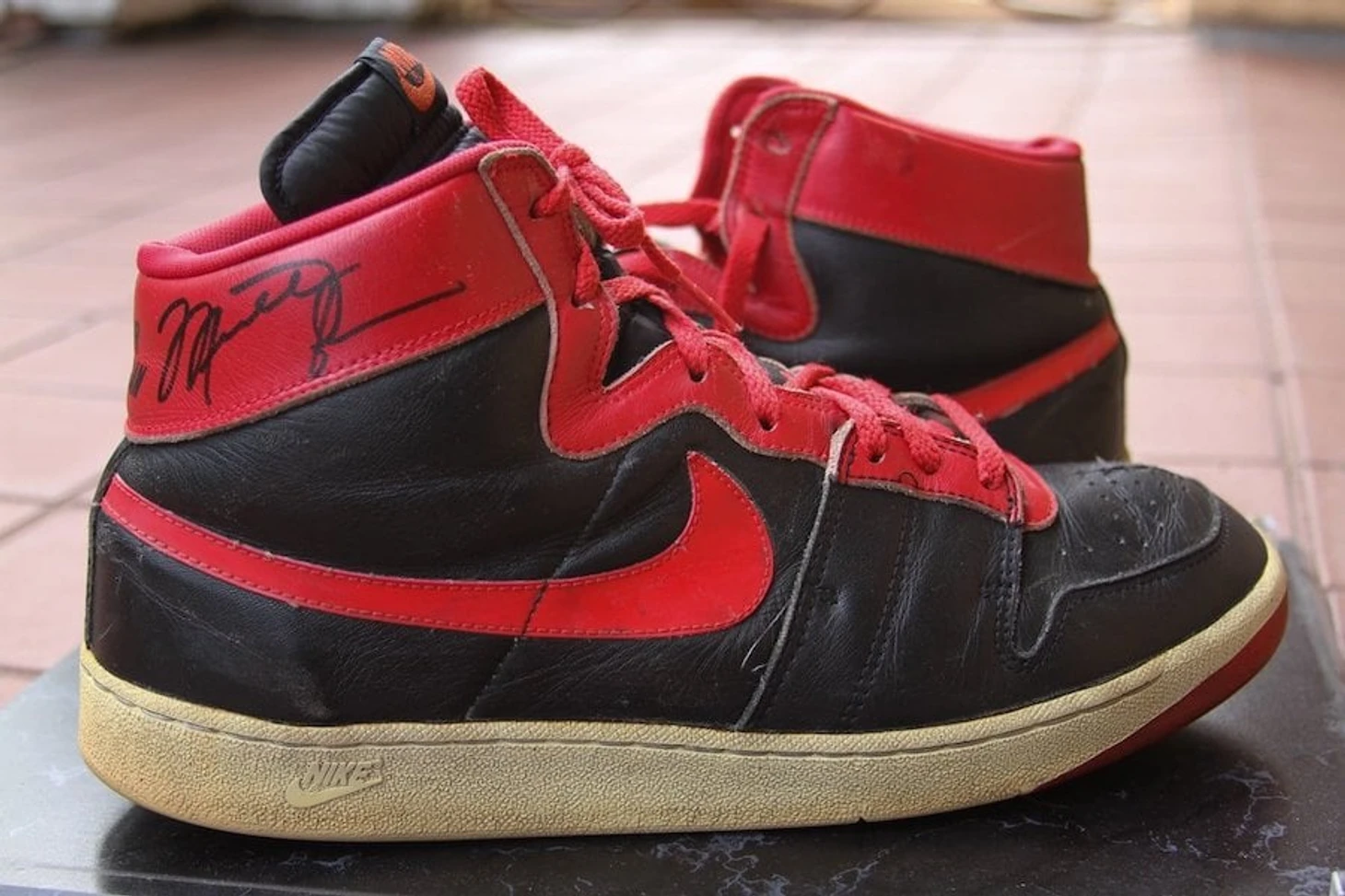 Не так давно, компания GoodwinSports, являющая владельцем ценного "артефакта", выложила в сеть снимки чёрно-красных кроссовок Nike Air Ship. Это одна из тех двух пар, которые, в своё время, были отданы Майклу. Ценный экспонат имеет автограф самого Джордана и находится в очень приличном, для своего времени, состоянии.