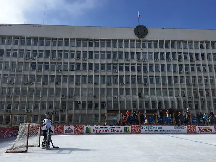 В перерыве меня свербит мысль, что я всегда очень хотел поснимать хоккей с высоты, а тут вот он шанс – здание администрации. В конце концов, журналист я или кто?! Захожу внутрь. Никого нет – все ушли на хоккей. Прохожу через турникет, поднимаюсь на седьмой этаж. Увы, вида из коридора в нужную мне сторону нет, только через кабинеты. На седьмом как раз кабинеты руководителей города, и они закрыты. К счастью, на шестом открыт один из кабинетов сотрудников поскромнее, и меня пускают поснимать оттуда минут пять.