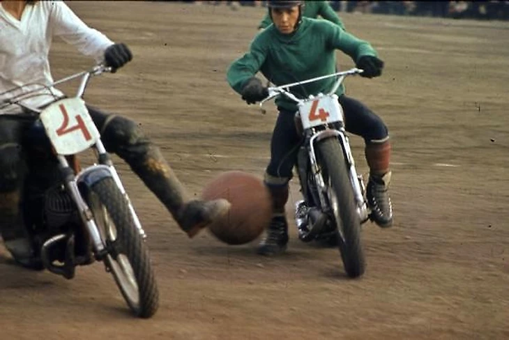 Мотобол часто называют «футболом на мотоциклах», хотя от футбола отличий очень много. Если нет удалений, то на поле в одной команде находятся четыре полевых и вратарь. Зародился мотобол практически одновременно в Англии и Франции в середине 1920-х. Англия отвалилась, но до сих пор большим мячом (диаметр 38-40 см, длина окружности 120-125 см, вес до 1,2 кг) играют Франция, Россия, Германия, Беларусь, Литва, Нидерланды и иногда Украина.