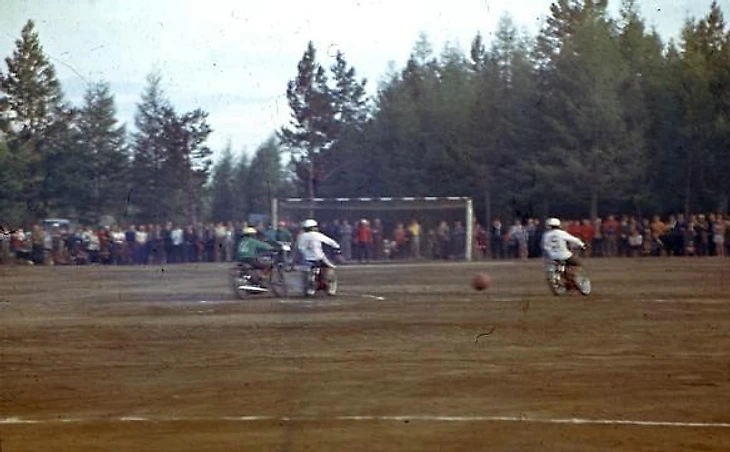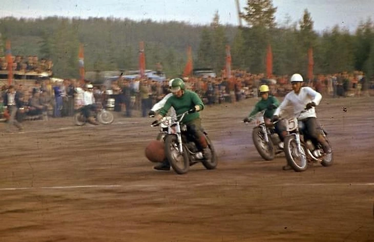 Лишь в 1959-м в Лужниках на празднике «Русская зима» прошли первые мотобольные соревнования в СССР. Первое место занял «Спартак» (Серпухов), второе – команда города Подольска, и только третье – московский «Спартак»». Матчей и кубков становилось все больше, команды возникали то там, то тут, и в 1965-м состоялся первый чемпионат СССР. До Якутии, с одной стороны, новость о новом спорте дошла не сразу, а с другой, учитывая размеры и бездорожье, достаточно быстро.
