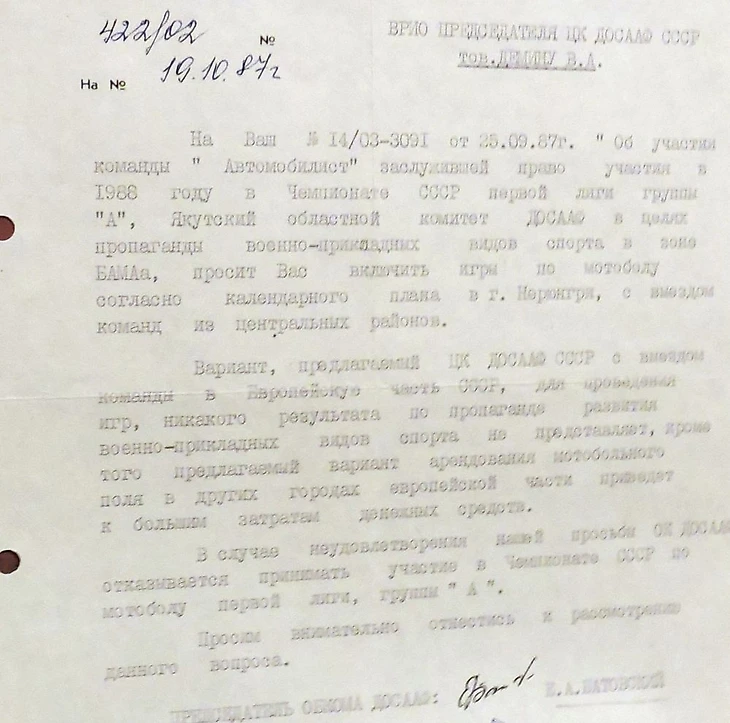 Завязалась бурная переписка. «Автомобилист» сначала обязали провести все матчи в Набережных Челнах, в ответ руководство якутского ДОСААФ пригрозило снять команду с чемпионата. Потом, видимо, на них надавили сверху, вроде как договорились про Челны, но почти перед стартом чемпионата домашним полем назначили станицу Кирпильскую Краснодарского края.