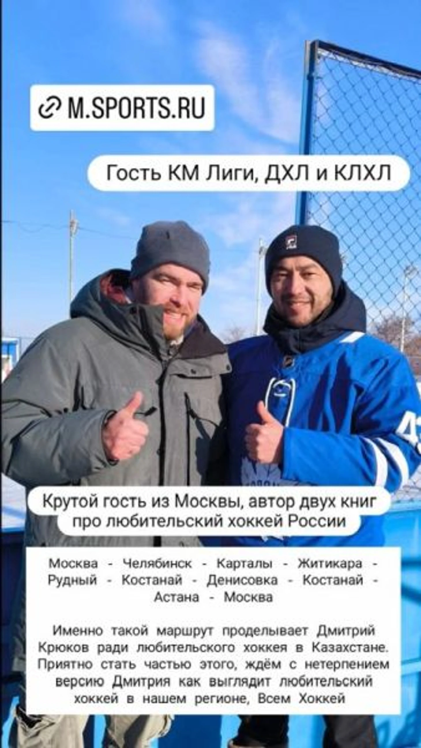 Но в Актобе и Караганду мне было не очень по дороге: я хотел попасть в село Денисовка Кустанайской области. Там шел турнир, на который я подписан в разных соцсетях уже несколько лет. Обдумывая логистику, я увидел знакомое название – ДЖЕТЫГАРА (сейчас все же чаще говорят Житикара). Смотрю на сайт Федерации хоккея Кустанайской области – бац, и там тоже турнир, тур некой КМ-Лиги!
