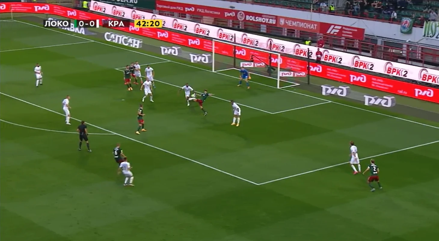 Если в первом тайме инициативой владел "Краснодар", то уже во втором тайме "Локо" перевернул игру и даже был очень близок к тому, чтобы удвоить счет в матче. Федор Смолов после поспешного подката от Мартыновича, получил кучу времени в опасной близости от ворот Сафонова, но пробил не совсем удачно. Матвей Сафонов спас свою команду и совершил одно из лучших спасений в этом матче.