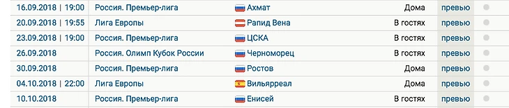 2 игры в Лиги Европы, во время которых станет понятен расклад в группе и наши перспективы на Евроосень. Надо брать максимальное количество очков как на выезде в Вену, так и с основным конкурентом за 1 место в группе – "Вильяреалом". Стартуем в Кубке России игрой с Новороссийском (прямо как в фильме «Тренер»). И 4 игры в РПЛ, в том числе огненное дерби с ЦСКА, в котором мы проверим чья молодежь круче, а также принципиальная игра с командой Валеры «Ну, и?» Карпиным.