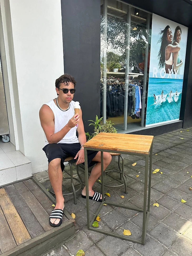 - Да. Мы полетели отдыхать после хорошего плотного сезона. А я люблю отдых, когда «всё включено» и ничего не выключено. Когда в отеле есть «шведский стол» и никуда не надо ехать кушать. А на Бали отдых такой, что всегда надо решать: где и что покушать, в какое место пойти пообедать. А сёрфинг – это же не так и легко. Энергозатратный вид. А я поехал восстановиться после сезона. Один раз попробовал, устал – и зачем мне это? Я приехал отдохнуть. И телом, и головой. Так что на сёрф больше не вставал. Просто сидел на стуле и наблюдал за волнами.