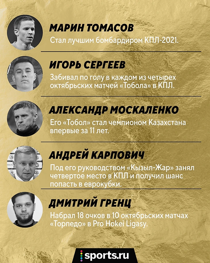 В 2021-м пользователи Sports.ru каждый месяц выбирают самого яркого представителя казахстанского спорта. Лучшими уже признавались Юлия Путинцева, Кирилл Панюков, Александр Мокин, Жоао Пауло, Никита Бояркин, Елена Рыбакина (дважды!), Зарина Байбатина и Айдос Ербосынулы.