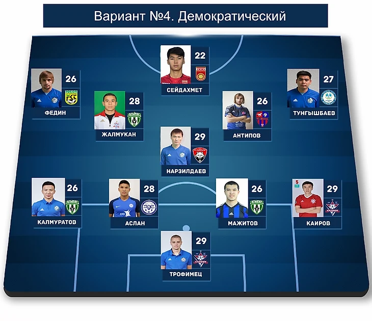 Напоследок,наша редакция решила принять во внимание желание фанатов многих клубов увидеть в главной команде местных звезд и понять уровень сборной без игроков 'Астаны' и 'Кайрата'. Линия атаки кажется довольно перспективной и опасной,однако защита,последние годы состоявшая только из игроков столичных клубов, вызывает большие опасения. Возможно,кого-то из этих футболистов мы все же увидим в сборной,однако вопрос лишь в том в качестве представителей каких клубов.