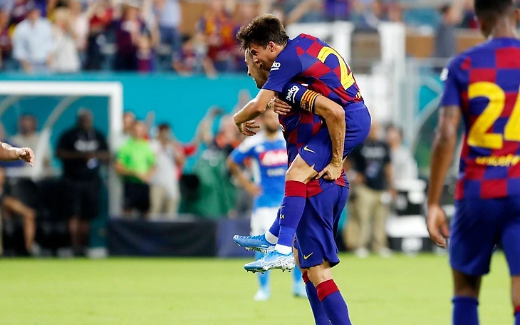 Главное трио «Барсы» в первом тайме матча против «Наполи»