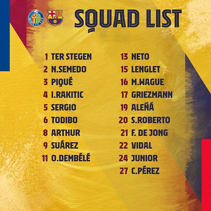 Рики Пучу, судя по всему, еще 2 года осталось безвылазно играть за вторую команду, получивший всего 15 минут в прошлом матче Фати почувствовал дискомфорт в правом колене, из-за которого не попал в заявку, а место его занял подписавший новый контракт Перес.