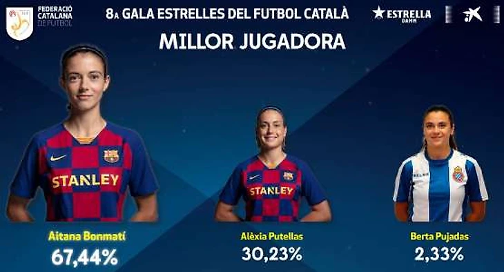 Sport.es сообщает: «Барса» будет верховодить на 8-ой церемонии награждения «Звезды каталонского футбола», которая пройдет 14 октября, клуб получит две главных награды. Лучшим футболистом сезона 2018-19 признан Пике, а футболисткой - Айтана Бонмати.
