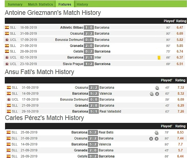 120-миллионный распил против Фати и Переса, недостойных (по мнению «болельщиков» ФКБ) играть в основе. В заголовке представлены популярные мнения «экспертов» сайта. Как и всегда, мой анализ запрещен, потому представляю выдержку с Whoscored.com. Всю статистику распила не представил, ибо за такую сумму игрок должен что-то из себя представлять всегда, а не в 4 играх из 11.