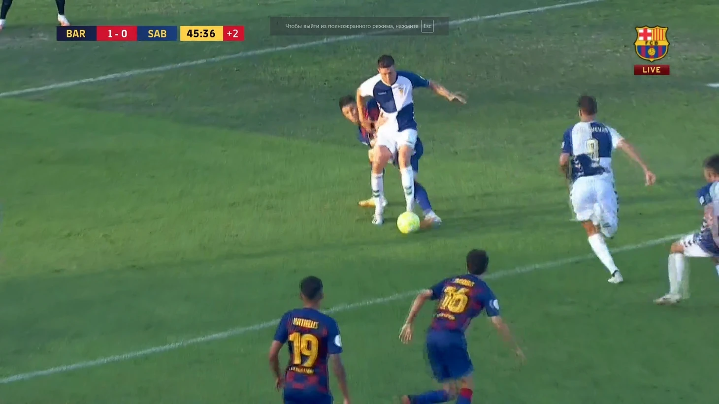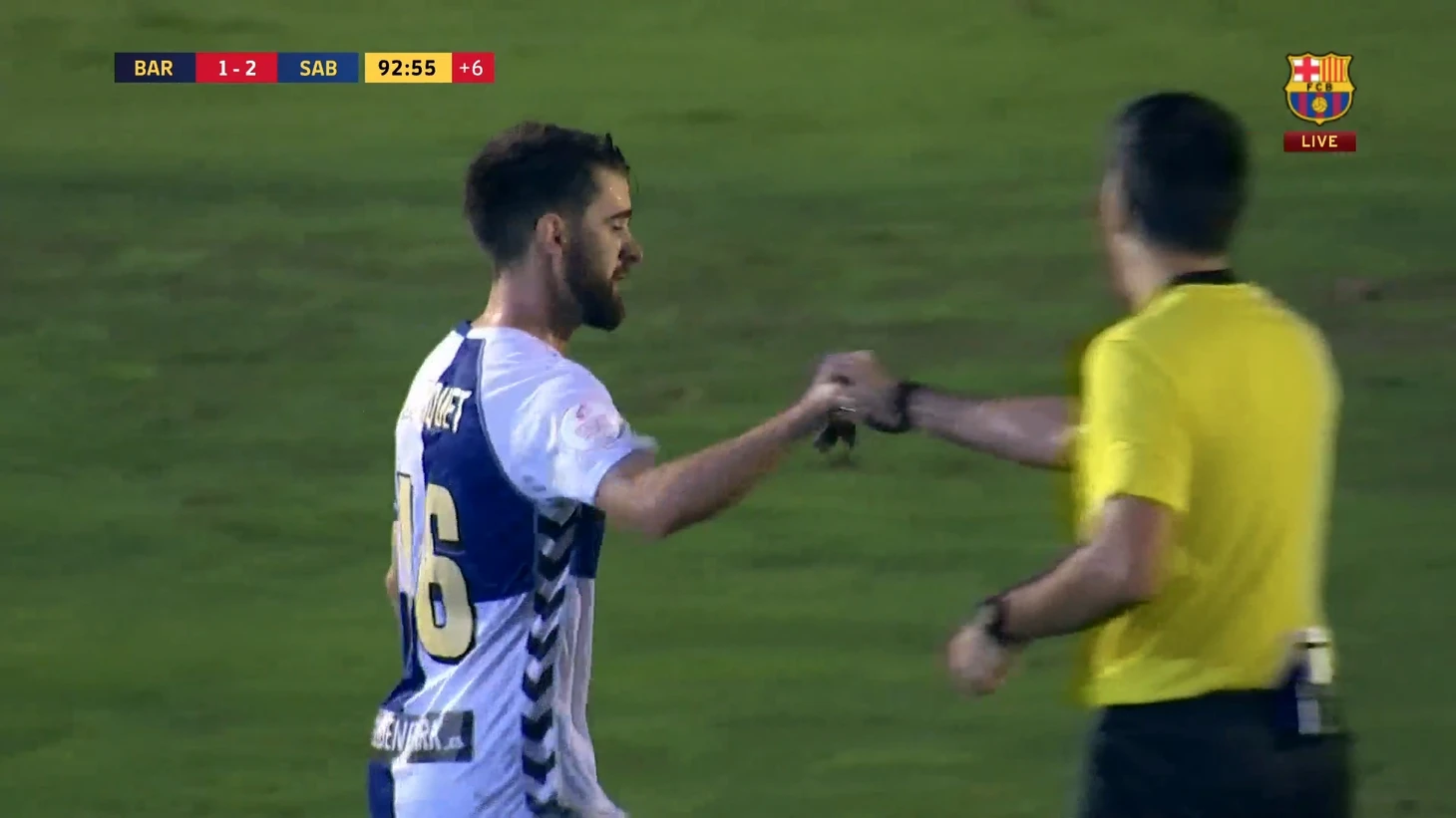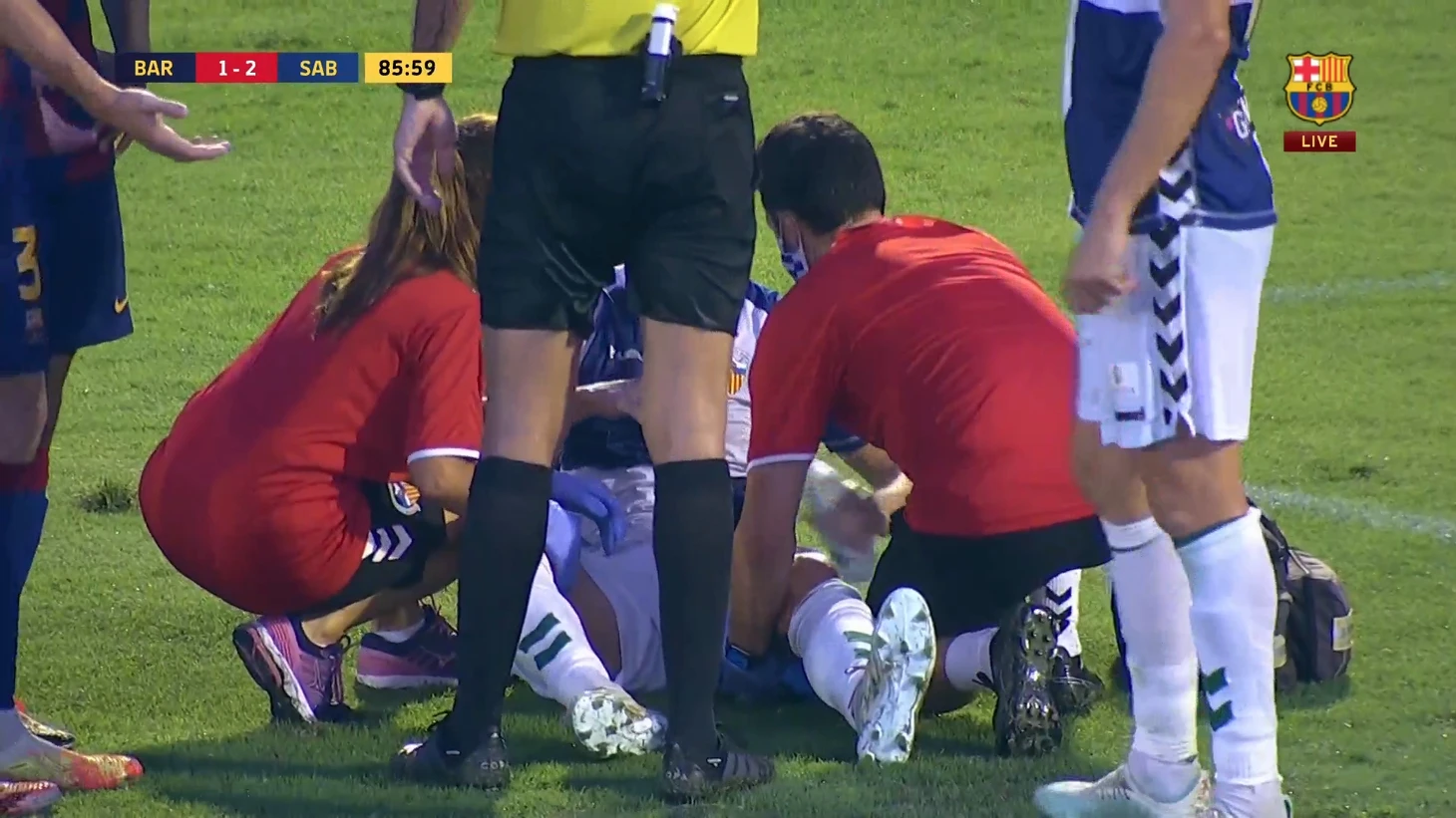 На 87-ой минуте игрок «Сабаделя» симулирует и крадет как минимум 2 минуты у «Барсы Б».