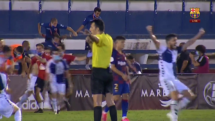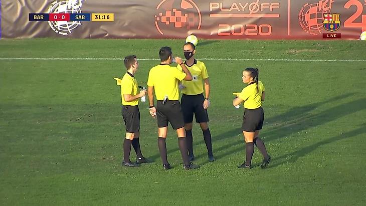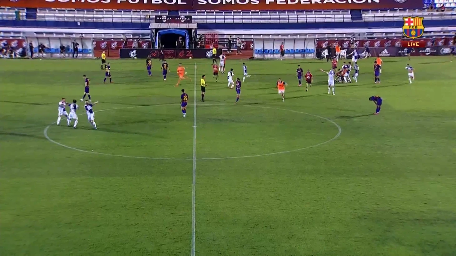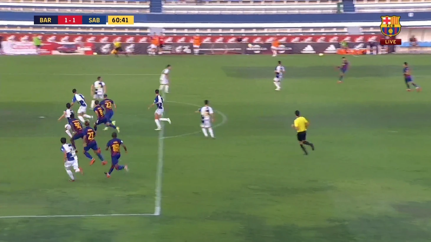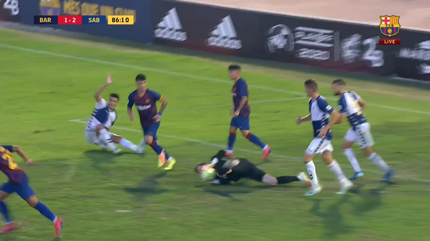 На 87-ой минуте игрок «Сабаделя» симулирует и крадет как минимум 2 минуты у «Барсы Б».