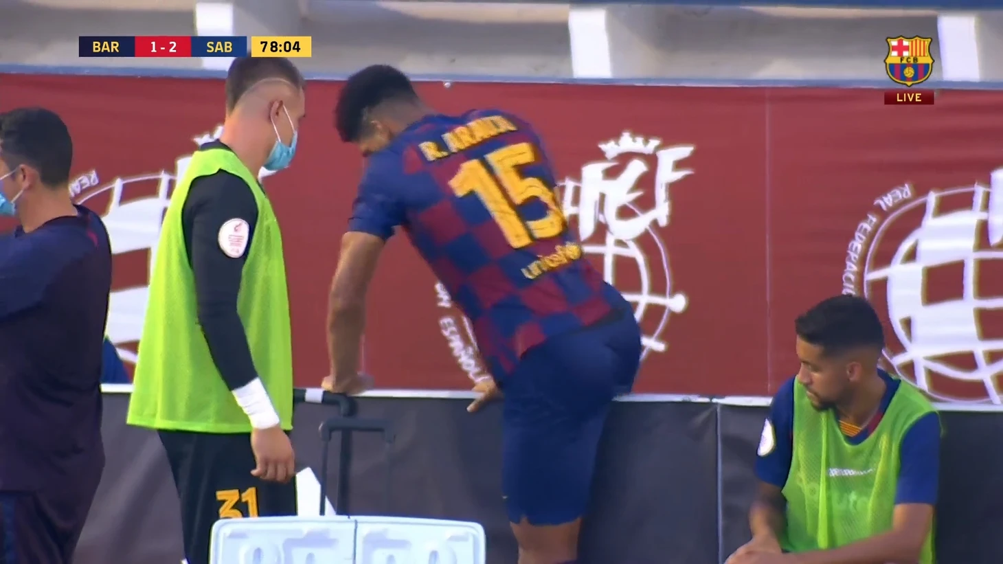 Араухо хочет вернуться на поле? Да, он возвращается, хоть и прихрамывает поначалу.