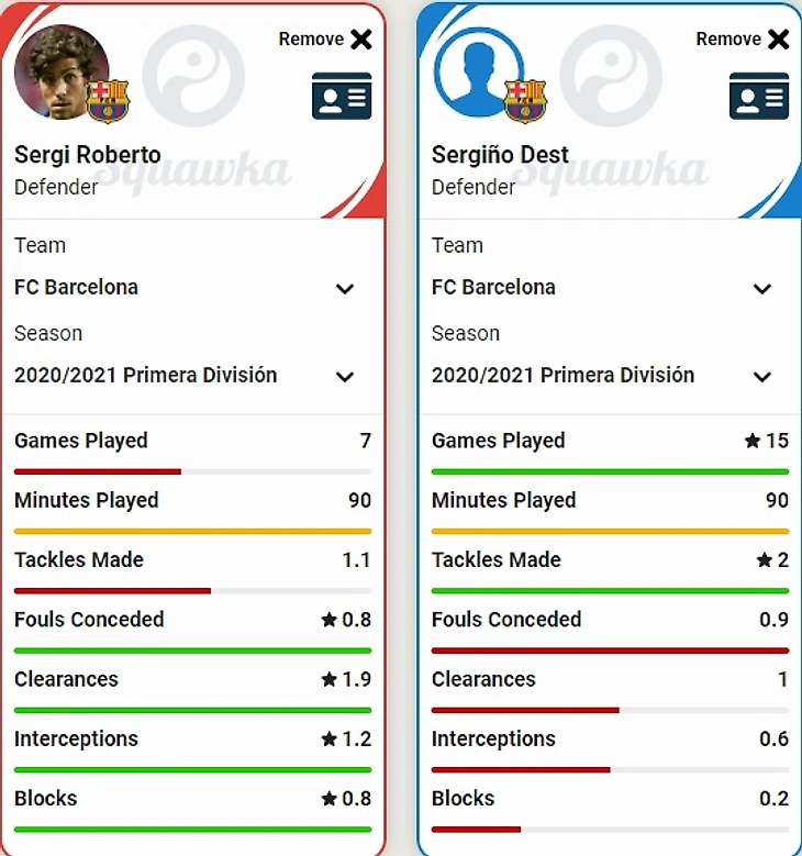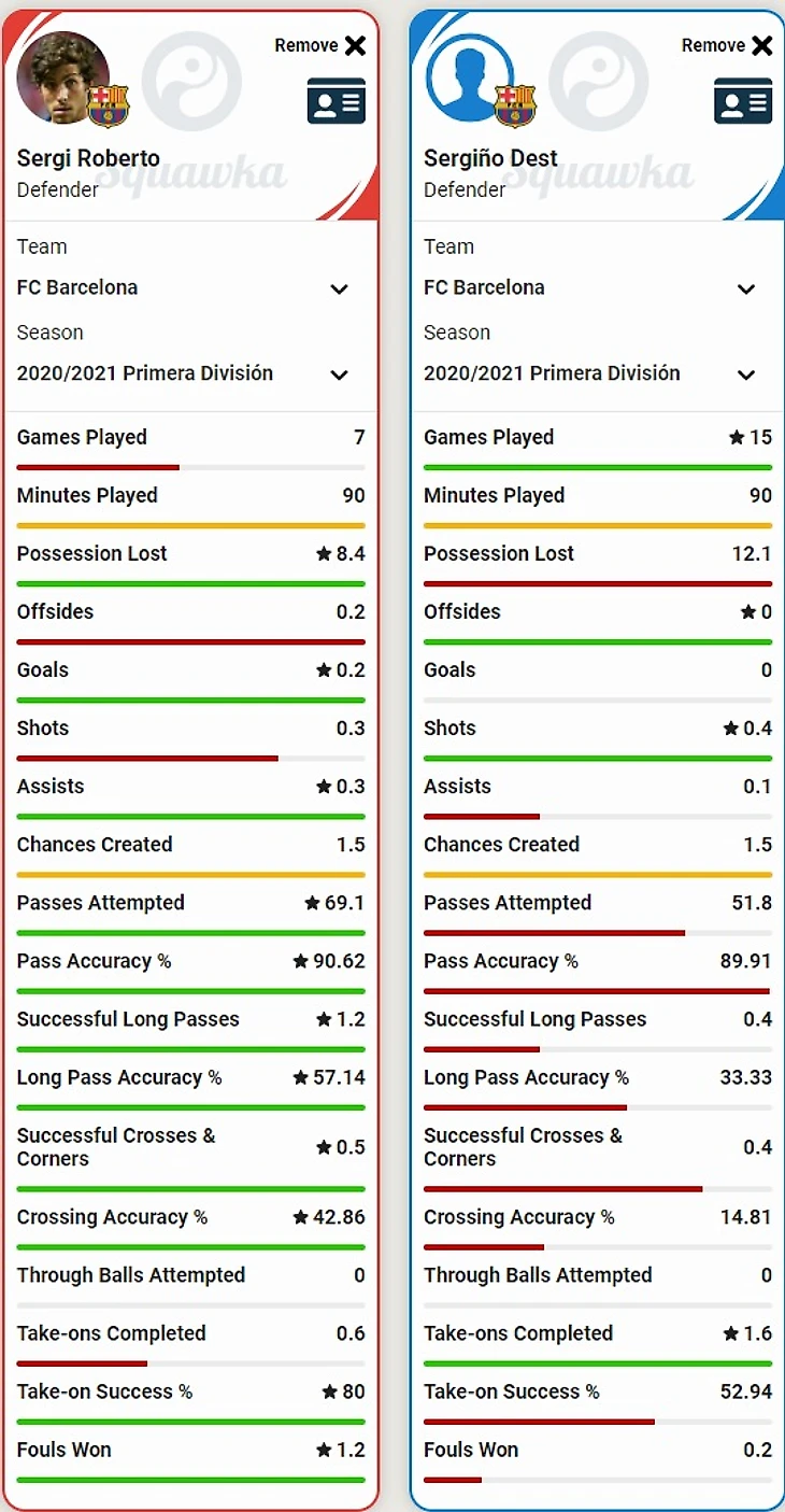 Я и раньше не понимал, чем Дест превосходит Роберто (кроме того, что этот «американец» почти на 100% голландец и пришел из академии «Аякса», что целиком и полностью соответствует предпочтениям голландского «тренера»), о чем написал в записи «Дест выглядит выступающим за США голландцем, не являющимся одним из опостылевших кантеранос». А вот каковы показатели Роберто и Деста в нынешнем сезоне: