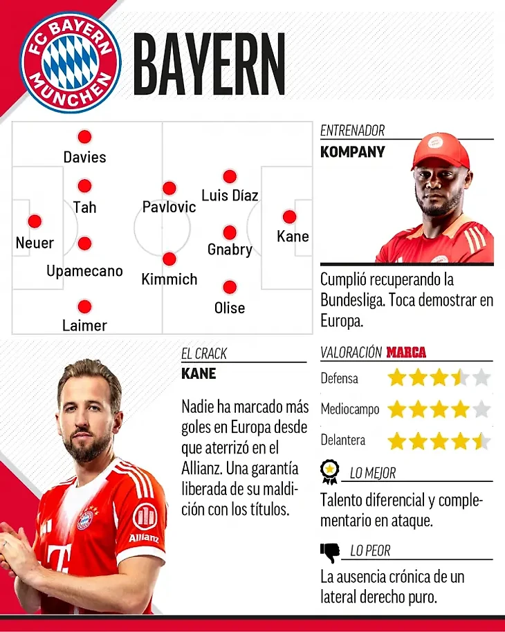 «Бавария» намерена вернуть себе титул чемпиона Бундеслиги, чтобы дать старт проекту Компани. Однако, имея всего один выход в полуфинал после победы в Лиге чемпионов в 2020 году, им необходимо вернуть себе статус поблекшего «чёрного зверя». В их составе одни из лучших игроков планеты. Однако серьёзные травмы Дэвиса и Мусиалы усугубили дисбаланс в команде: Лаймер остаётся запасным правым защитником, Киммих продолжает искать партнёра топ-уровня, а альтернатив в атаке практически нет.