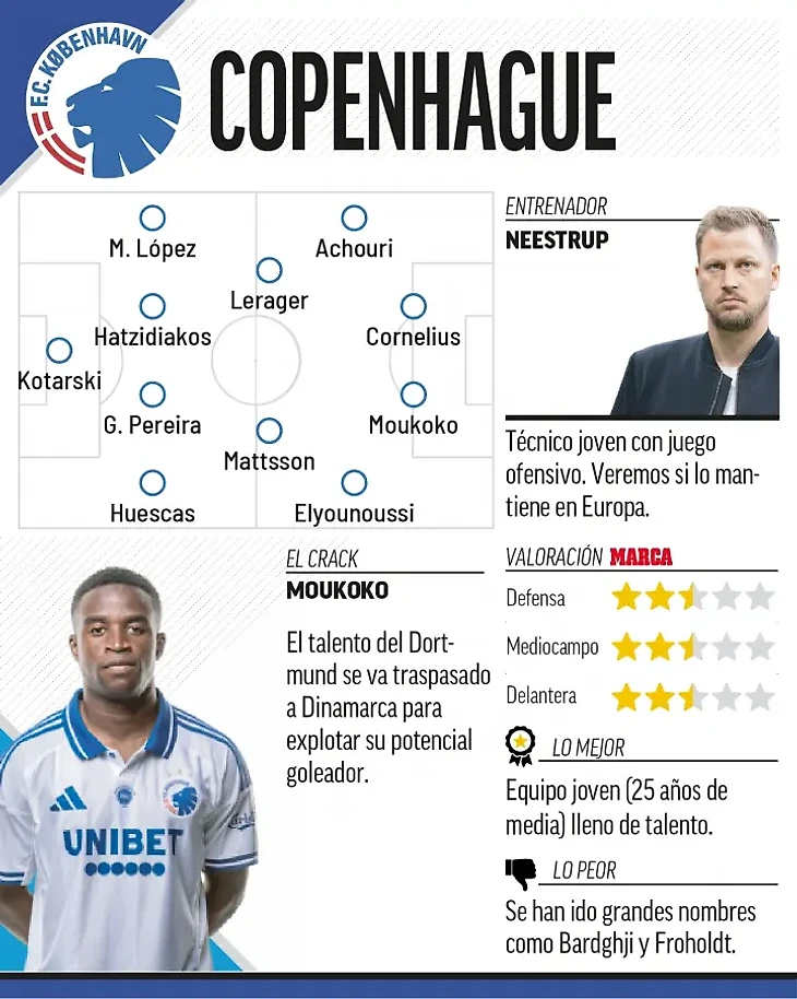 Этим летом в Эйндховене произошла настоящая революция. Чемпионы Эредивизи воспользовались уходом Де Йонга (Лука), Тиллмана, Ланга, Бакайоко и Боскальи, чтобы омолодить состав важными приобретениями: Яреком, Ван Боммелем, Ваннером, Силдиллией... Однако костяк команды сохранился (Дест, Фламинго, Схоутен, Верман, Тил...), и Перишич продолжает вносить свой вклад. Однако команде не хватает игрока номер 9 с определённой стабильностью в нападении: это станет задачей Плеа, Пепи и Боаду. Они создают много опасности на флангах (Дест сейчас в отличной форме) и при стандартных положениях.