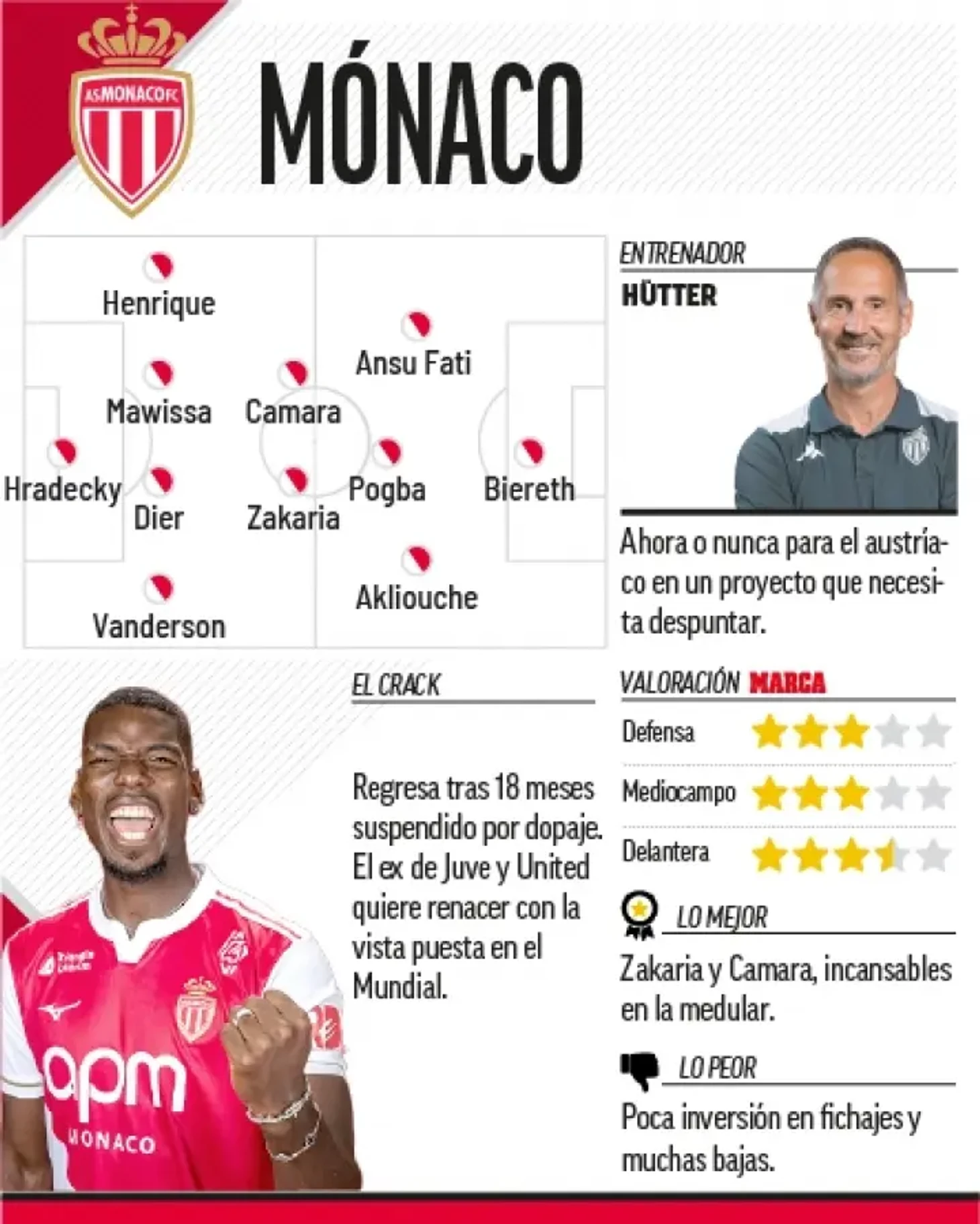 Французский футбол — это не только «ПСЖ». Другой французский гранд тоже хочет проснуться. Для этого они вложили все силы что бы приобрести двух игроков, которые также стремятся вернуть себе лучшую форму: Ансу Фати и Поля Погба. Несмотря на долгое ожидание, игрок молодёжной команды «Барселоны» уже блистает на трениках и готов к своему дебюту. Чемпион мира 2018 года, в свою очередь, хочет выбраться из «ямы», в которую он попал после дисквалификации за допинг, и снова блеснуть в полузащите. Спустя 10 лет после исторического полуфинала с Фалькао, Мбаппе и Бернарду Силвой, французская команда стремится заявить о себе.