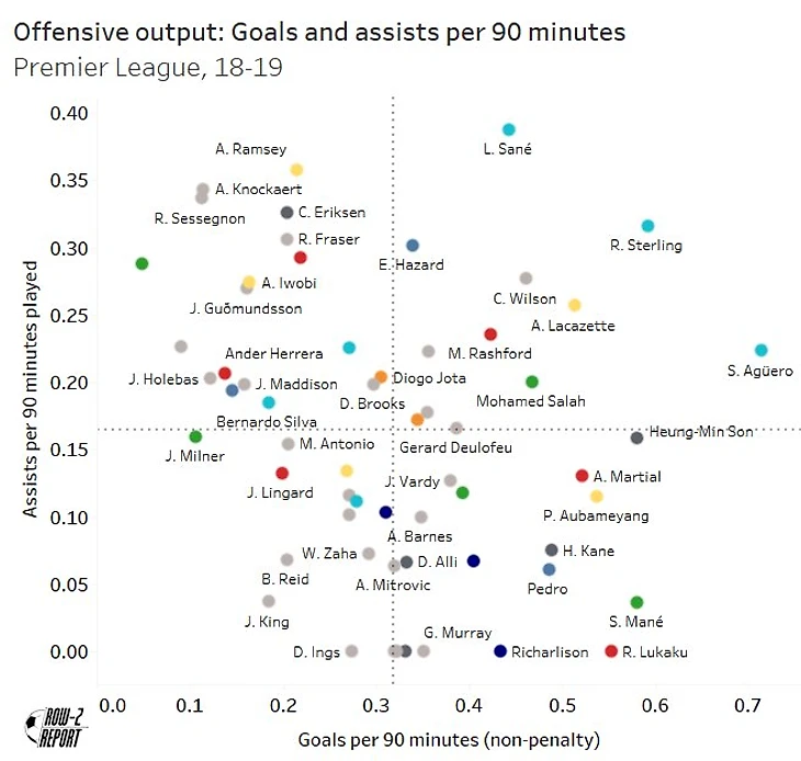 По ассистам на 90 минут отлично выглядит Рэмзи, чуть хуже Стерлинга.
