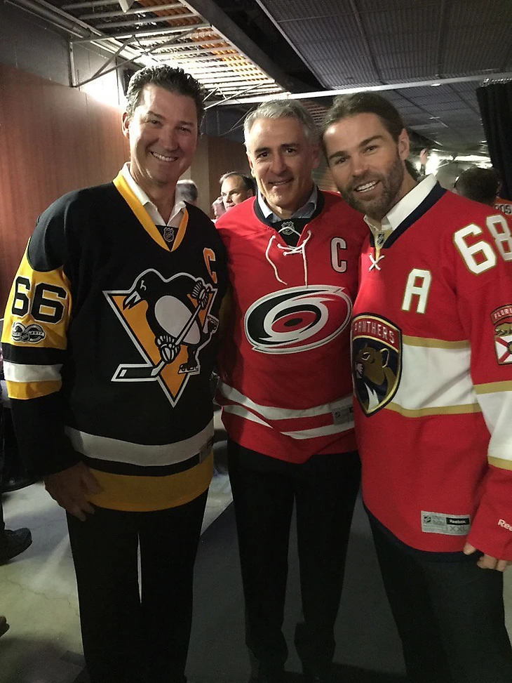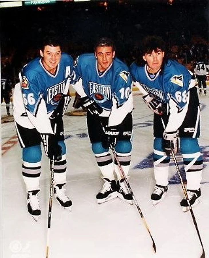 Марио Лемье, Рон Фрэнсис и Яромир Ягр на Матче Всех Звезд НХЛ 1996-го года. Легендарность каждого хоккеиста на фото сложно описать. Фрэнсис четырежды принимал участие в МВЗ НХЛ ( 1983, 1985, 1990, 1996).
