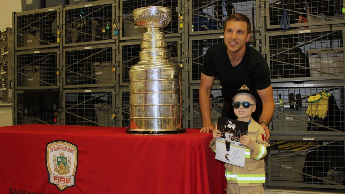 Брэйден Шенн привез КС на работу к своему отцу в Саскатун. Джефф Шенн является пожарником и работает в главном пожарном департаменте Саскатуна. 280 пожарных со своими семьями пришли увидеть Кубок. После кучи фотографий и раздачи автографов, отец и сын покатали Кубок на пожарной машине.
